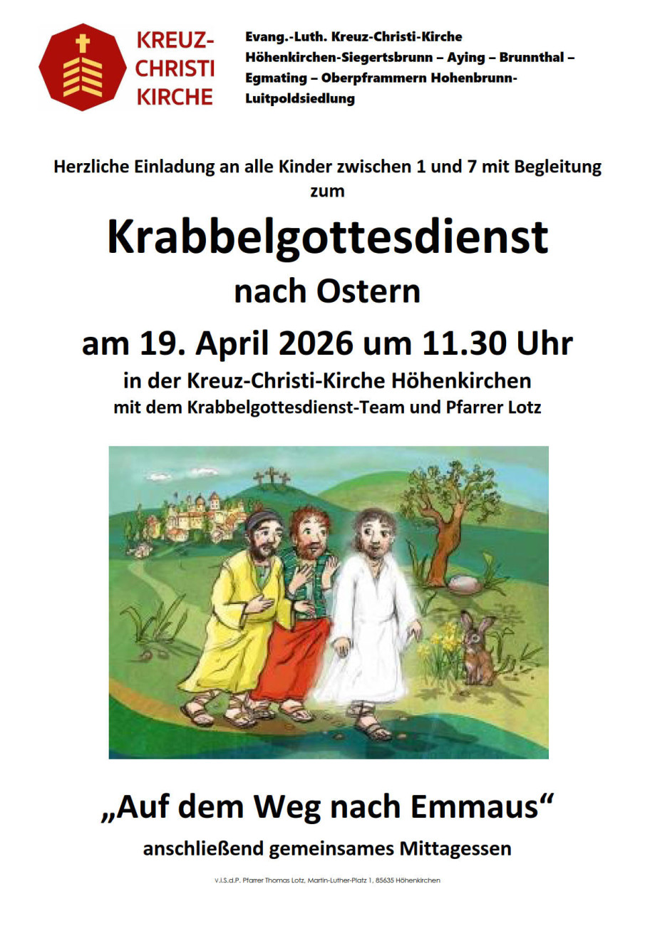 Wir sind die evangelisch-lutherische Kirchengemeinde für Höhenkirchen-Siegertsbrunn, Aying, Brunnthal, Egmating, Oberpframmern und Hohenbrunn (Luitpoldsiedlung), im Südosten von München.